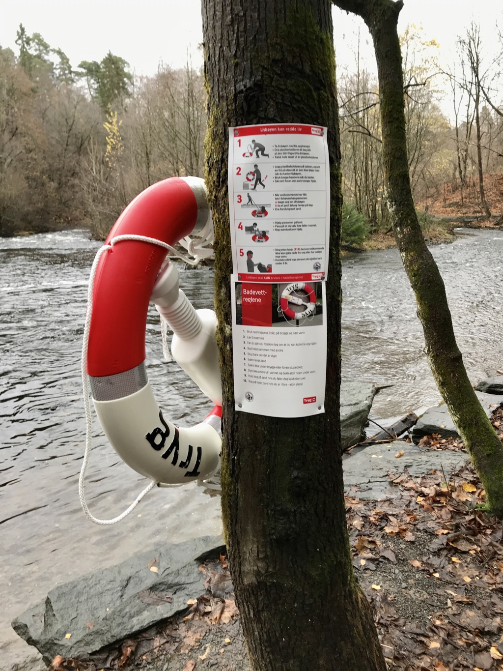 Redningsbøye ved Lysakerelva