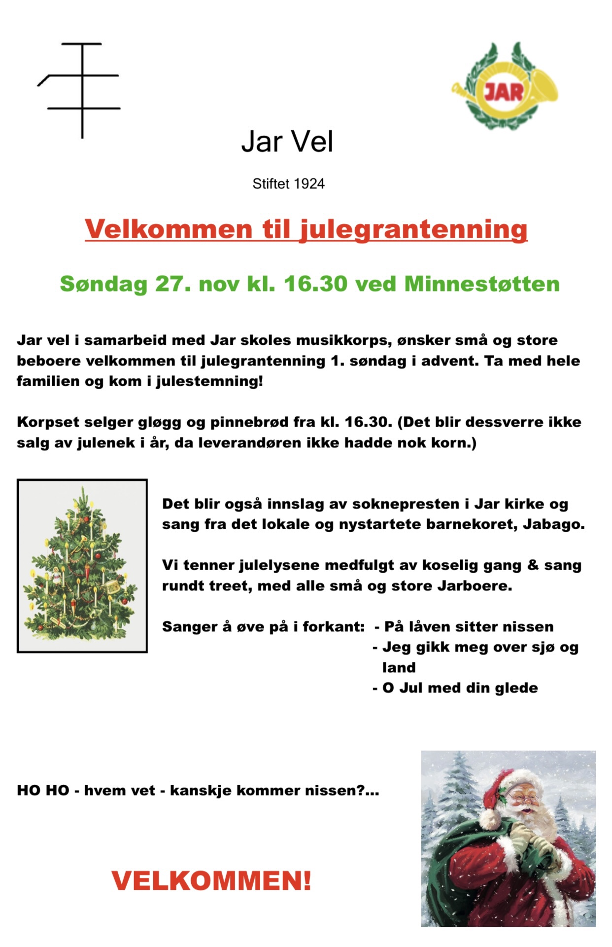 Velkommen til julegrantenning ved Minnestøtten 27/11-22
